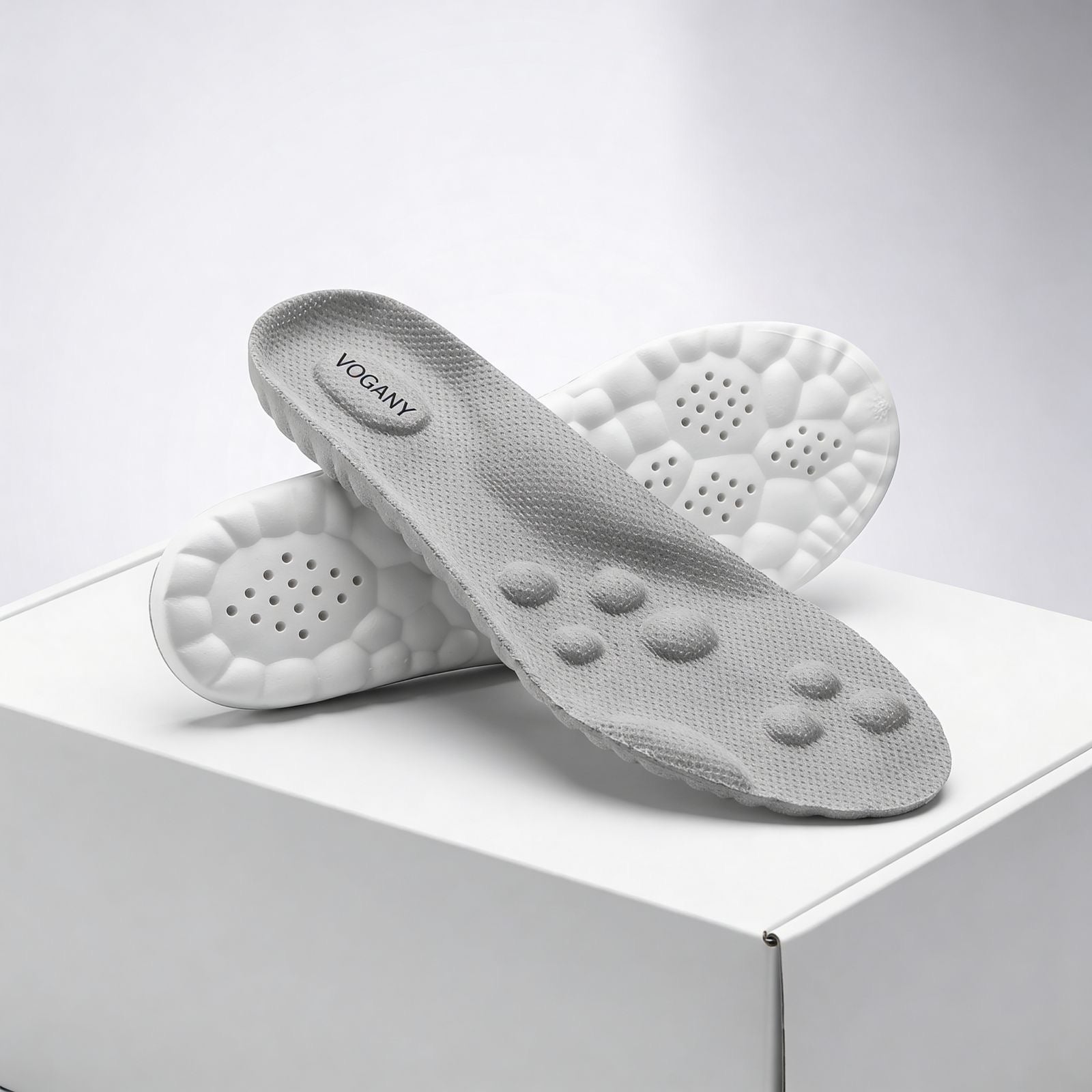 Vložky Vogany pomáhají znovu srovnat vaši nohu, snižují tlak na citlivé oblasti a absorbují nárazy s každým krokem, abyste se mohli pohybovat přirozeně a pohodlně, den za dnem.